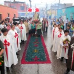 Las alfombras no faltaron, la banda de música, el coro de jóvenes y la habitual pólvora estaban listos.