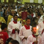 La procesión con el Santísimo Sacramento por las naves estuvo revestida también de mucha solemnidad, y culminó con la bendición.