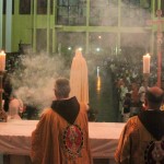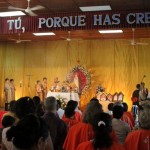 Después de la coronación, solemnizada por el Coro de los Heraldos en Costa Rica, la Imagen Peregrina fue colocada en un artístico altar.