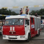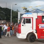 Un camión del Cuerpo de Bomberos, recién estrenado, fue la base para la Imagen de la Virgen, y detrás seguían numerosos vehículos.