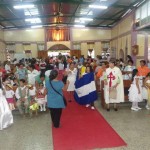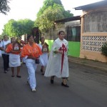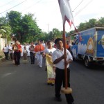 El número de personas que querían acompañar a la Virgen caminando por las calles era tal, que se tuvo que improvisar la procesión con la feligresía de a pie también, encabezada por el P. Yalmer Antonio Aragón Martínez, Rector de la Santa Iglesia Catedral de Juigalpa.